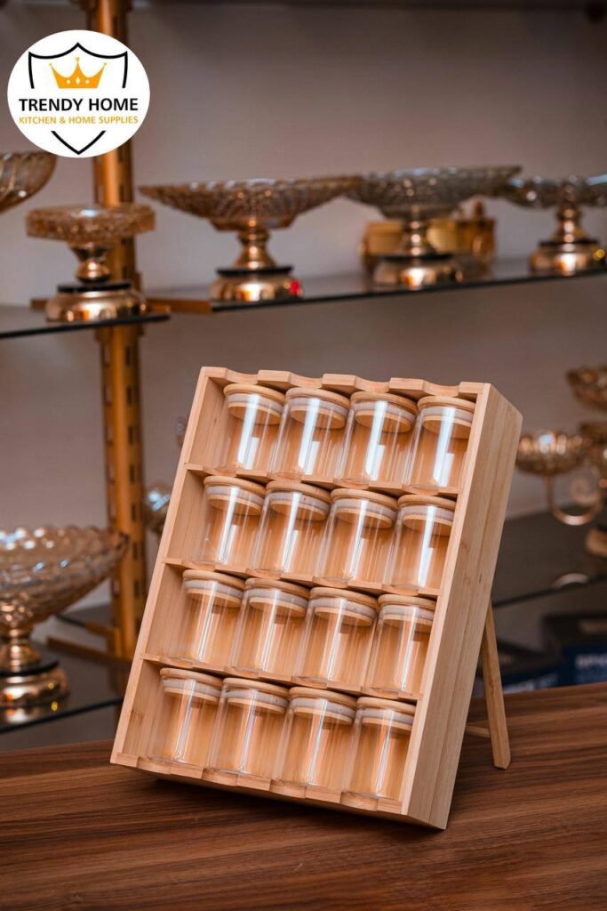 كل توابلِك في مكان واحد… طقم توابل ١٦ قطعة بتصميم السلم الخشبي العملي 🌸✨