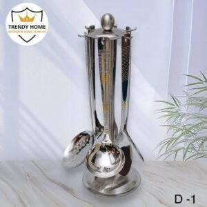 واحدة من أبرز المزايا التي يقدمها هذا الطقم هي الحامل الذي يتضمنه. الحامل الأنيق يوفر طريقة منظمة لتخزين المعالق بشكل مثالي، كما يضيف لمسة جمالية لمطبخك. بفضل التصميم الذكي، يمكنك الوصول إلى المعالق بسهولة وبدون عناء، مما يوفر الوقت أثناء إعداد الطعام.