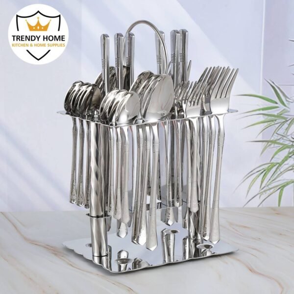 يتمتع هذا الطقم برونق خاص يعكس الدقة الألمانية في التصميم. المواد المستخدمة في التصنيع مقاومة للصدأ والتآكل، مما يجعله خيارًا عمليًا لكل منزل. كل قطعة مصممة بوزن متوازن ومقبض مريح لضمان سهولة الاستخدام في أي مناسبة، سواء في المناسبات العائلية أو الاستعمال اليومي.