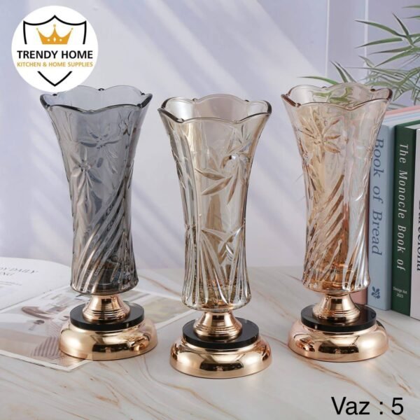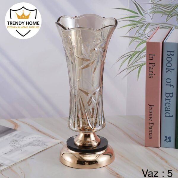 أضف لمسة من الفخامة إلى منزلك مع فازه كريستال بقاعدة استيل ذهبي. تصميمها المذهل يجذب الأنظار، حيث يجمع بين التفاصيل الدقيقة للكريستال الشفاف وبريق اللمسة الذهبية من قاعدة الاستيل. إنها ليست مجرد ديكور؛ إنها قطعة فنية تعكس ذوقك الراقي.
